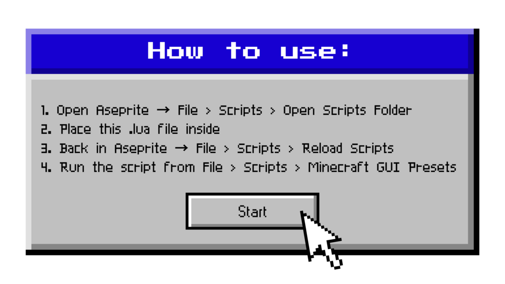 ๐Ÿ‘พ๐ŸŸฉ๐ŸŸซ๐ŸŸจ Ready-to-use Aseprite canvas script for Minecraft UI